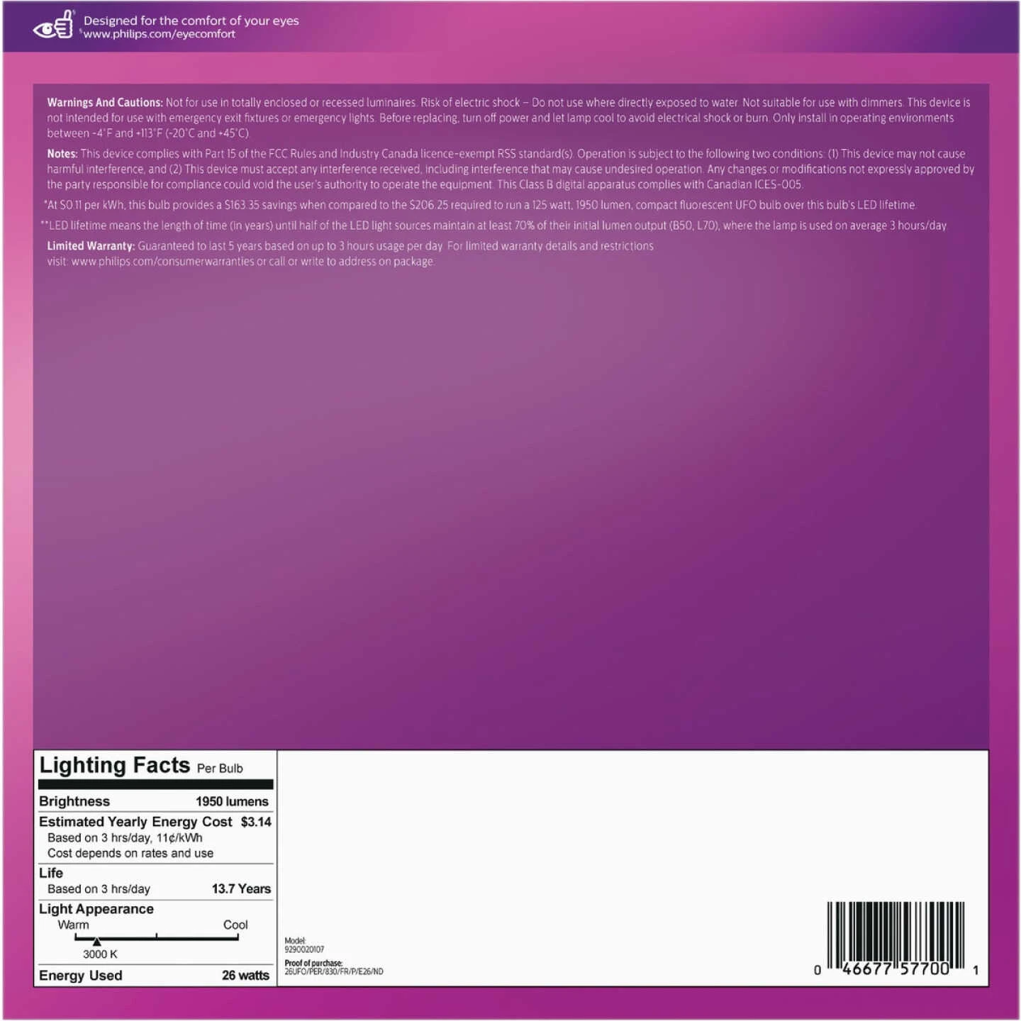 | Equivalent Incandescent Wattage | 125W Equivalent |