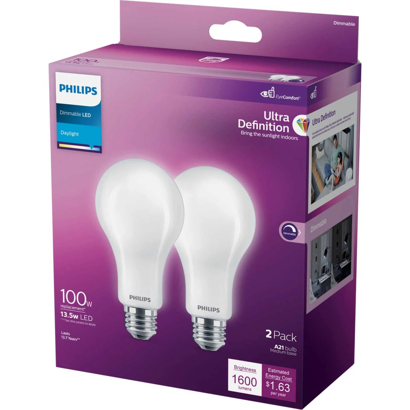 - EyeComfort LED bulbs are designed to be comfortable on your eyes, with no visible flicker or glare