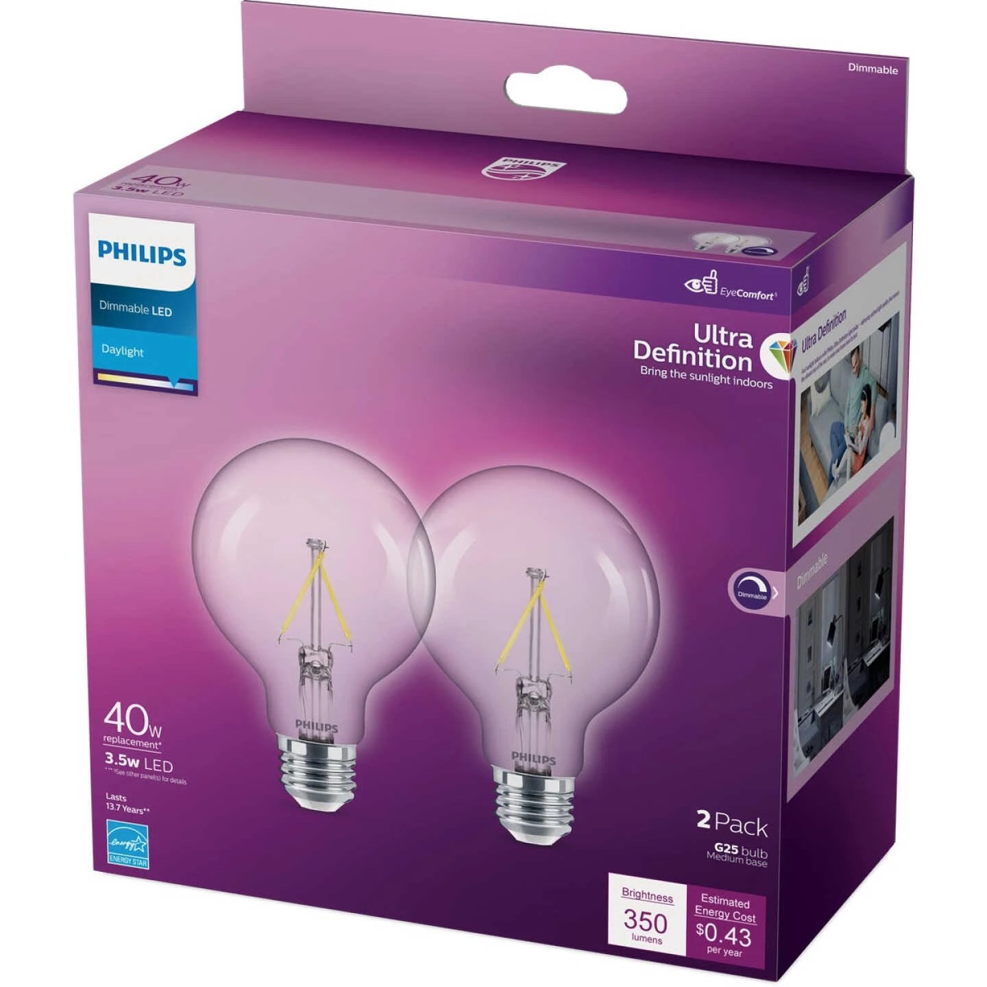 - Dimmable warm glow effect, enabling light levels to dim to the warm tones of traditional bulbs