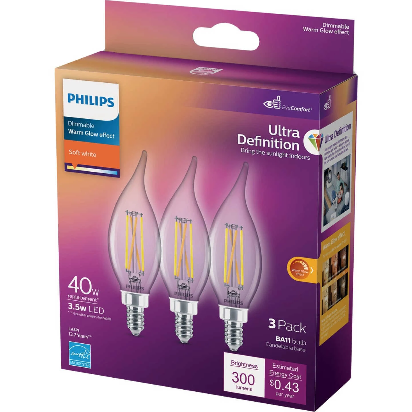 - Dimmable warm glow effect, enabling light levels to dim to the warm tones of traditional bulbs