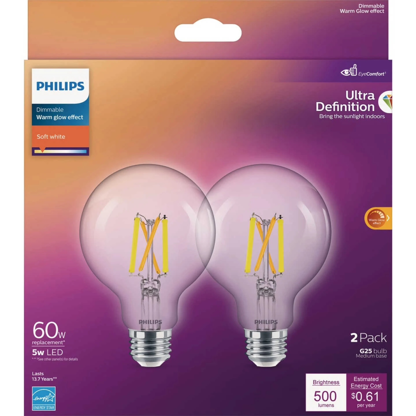 - Dimmable warm glow effect, enabling light levels to dim to the warm tones of traditional bulbs
