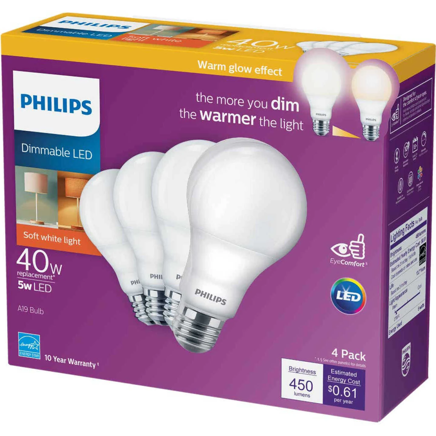 - Warm Glow dimming technology for a smooth dimming effect
